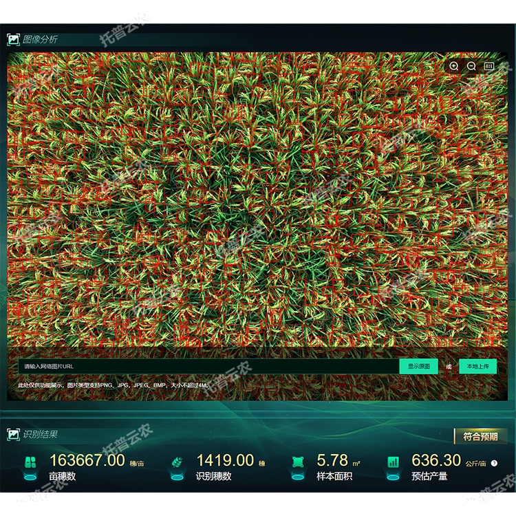 1.多品种智能监测:覆盖水稻、小麦、玉米等常见作物检测能力:从补苗指导、生育期识别、株高分析、覆盖度分析、倒伏分析以及产量预估等算法能力;