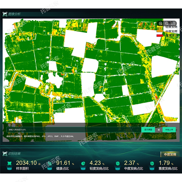 16.多维度数据报表:支持通过时间、地块等维度,通过扇形图、柱状图、列表等形式展现地块、识别结果等数据,方便科研分析。